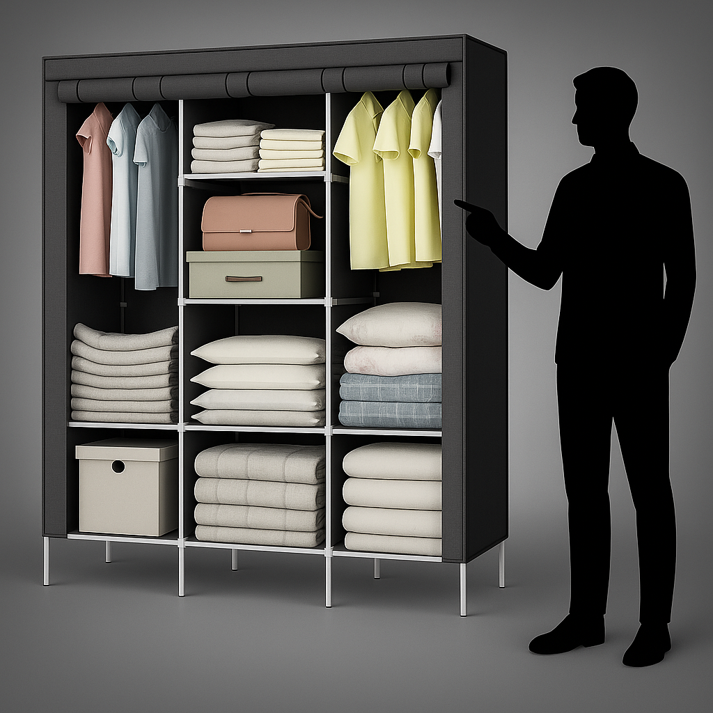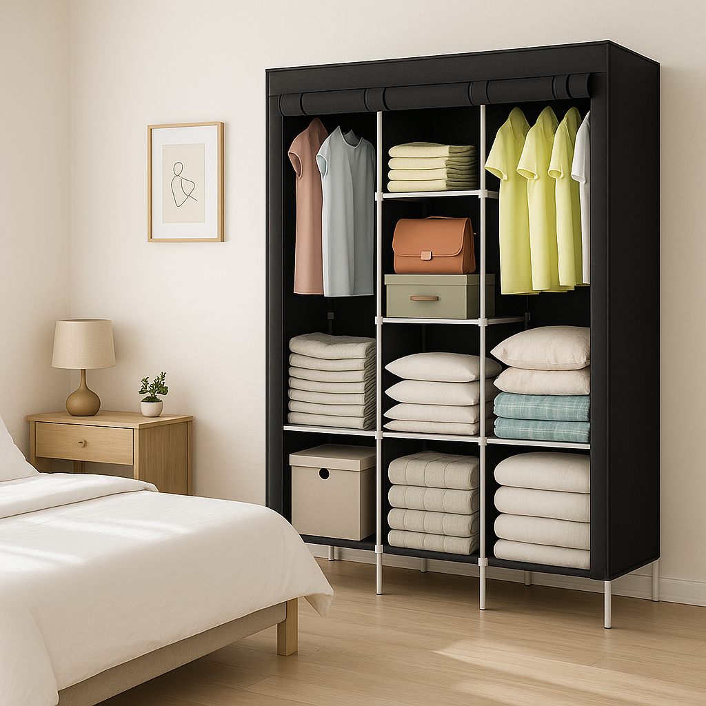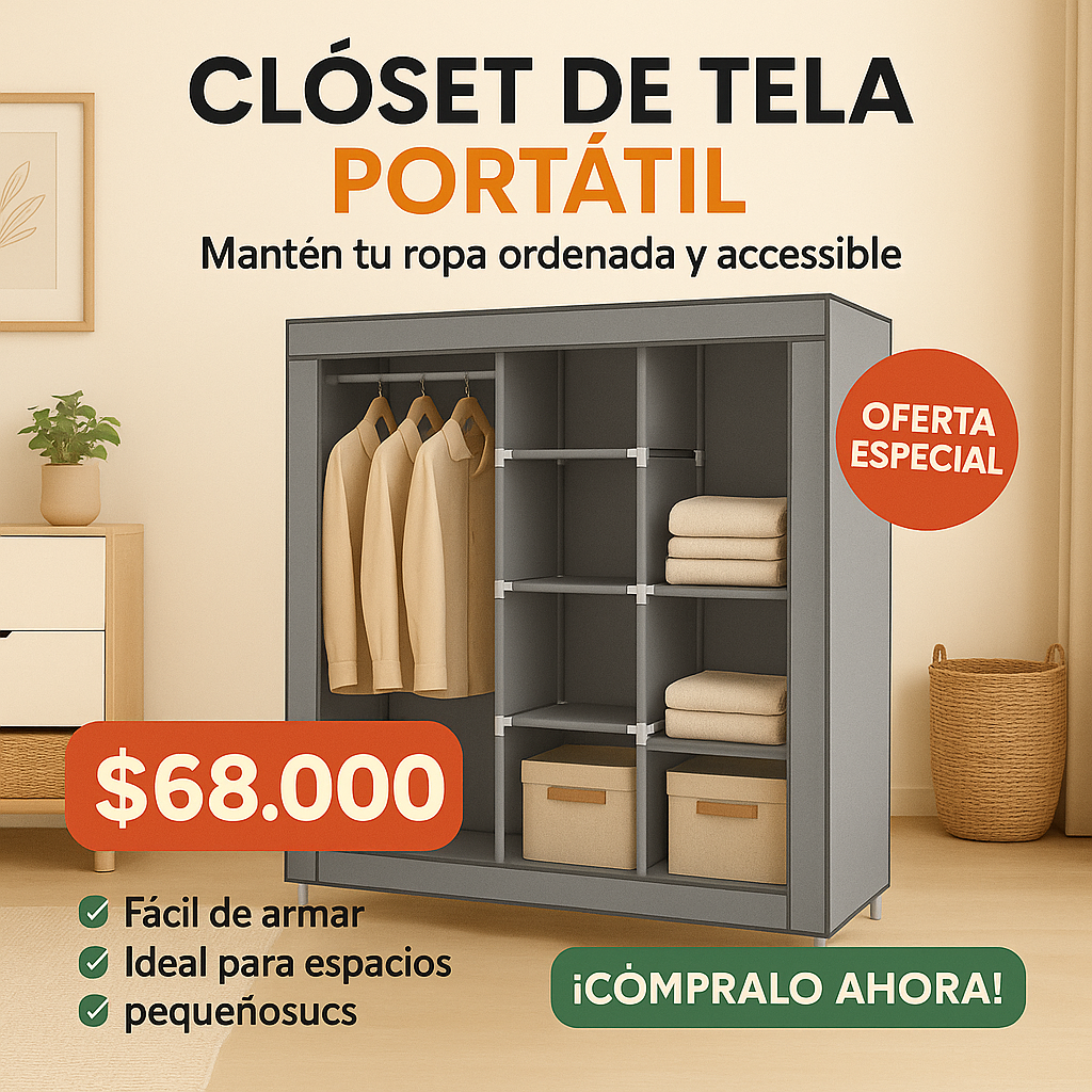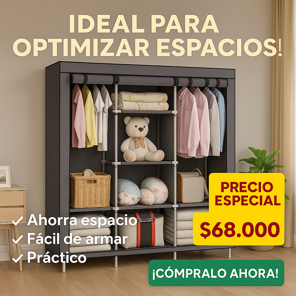 “Ordena tu hogar hoy mismo 🏠✨. Armario en tela resistente y ligero, ¡llévatelo ya!”